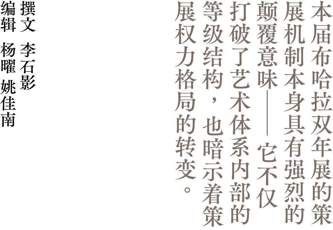 本届展览要求具有国际经验的现代艺术家取“深藏不露的”保守手工艺人协做,这一策展机制本身具有强烈的意味——它不只打破了艺术系统内部的品级布局,也暗示着策展款式的改变。正在此,策展人更接近一种“介入式制做者”(interventional producer)的脚色——从文化出产的上逛介入,使分歧语域、分歧强度的文化光谱都获得最大化的可见性。取此同时,策展实践展示出从头定义“包涵性”的野心,即认可“学问”(worldly knowledge)亦是现代艺术的主要构成部门。这种视角超越了手工艺回归美术馆的表层议题,更正在于从头确认人类取先人、取保守学问系统之间的保持——那些躲藏于烹调、织布、音乐、跳舞、诗歌取典礼中的聪慧,形成了现代艺术的另一种学问布局。