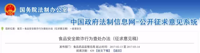 第一条【立法目标】为峻厉查处食物平安欺诈行为,食物平安,保障身体健康和生命平安,按照《中华人平易近国食物平安法》等法令律例,制定本法子。第二条【合用范畴】县级以上食物药品监视办理部分根据职责分工查处食物平安欺诈行为,合用本法子。第【概念界定】本法子所称食物平安欺诈是指行为人正在食物出产、储存、运输、发卖、餐饮办事等勾当中居心供给虚假环境,或者居心坦白实正在环境的行为。第四条【根基准绳】县级以上食物药品监视办理部分查处食物平安欺诈行为,该当遵照严酷、及时、公开、的准绳。第五条【共同查处权利】食物出产运营等相关行为人该当共同食物药品监视办理部分对食物平安欺诈行为的查处,出产运营场合,照实供给相关材料、数据和消息。(一)正在产物研发、进货检验、出厂查验、储存运输、不及格食物处置、食物平安变乱措置等勾当中坦白实正在环境或者进行虚假记实;(三)正在出产运营勾当中伪制、变制或者利用伪制、变制的出产运营许可证书、产物注册证书、存案凭证、查验检疫及格证明、产地证明、产物注册证号、出产许可证号、加工工艺、产地、出产地址、联系体例等消息;第十条【食物宣传欺诈】以收集、德律风、电视、、、会议等体例宣传食物,有下列景象之一的,属于食物宣传欺诈:(一)食物的机能、功能、产地、规格、成分、出产者、尺度、保质期、查验演讲等消息取现实环境不符;(三)通俗食物、暗示具有功能或者特殊医学用处的,或者利用“可医治”、“可治愈”等医疗术语;(一)食物查验机构查验数据,私行改换样品,查验数据和查验成果,出具虚假查验结论等;(二)食物认证机构违反认证法式坦白实正在环境、审核记实、伪制认证文书或者出具虚假认证结论等。(一)申请保健食物、特殊医学用处配方食物、婴长儿配方乳粉产物配方注册时,供给虚假消息、数据、材料和样品;(一)保健食物进行存案时,供给虚假研告、产物配方、出产工艺、平安性和保健功能评价材料、查验演讲等材料;(四)食物储存办事供给者向监管部分演讲虚化名称、地址、代表人或者担任人姓名,以及储存食物的所有人、联系体例等消息;(五)集中买卖市场创办者演讲虚假市场名称、居处、类型、代表人或者担任人姓名、食物平安办理轨制、食用农产物次要品种、摊位数量等消息。第十六条【提交虚假监管消息】食物出产运营者正在食物药品监管部分进行监视查抄、抽样查验、案件查询拜访、变乱措置时,坦白实正在环境,或者提交虚假的天分证明、进货检验记实、食物出产运营记实、出厂查验记实、食物查验及格结论、扣问消息等,第十七条【产物欺诈法令义务】 违反本法子第七条第(一)、(二)、(三)、由县级以上食物药品监视办理部分按照《食物平安法》第一百二十第一款的赐与惩罚,并对其代表人、次要担任人、间接担任的从管人员和其他间接义务人员处1万元以上3万元以下罚款。违反本法子第七条第(五)项,由县级以上食物药品监视办理部分按照《食物平安法》第一百二十四条第一款的赐与惩罚,并对其代表人、次要担任人、间接担任的从管人员和其他间接义务人员处1万元以上3万元以下罚款。第十八条【食物出产运营行为欺诈法令义务】违反本法子第八条,由县级以上食物药品监视办理部分赐与,并处1万元以上3万元以下罚款,并对其代表人、次要担任人、间接担任的从管人员和其他间接义务人员处5千元以上1万元以下罚款。第十九条【标签仿单欺诈法令义务】 违反本法子第九条第(一)、(二)、(四)、(五)、(六)项,由县级以上食物药品监视办理部分按照《食物平安法》第一百二十五条第一款的赐与惩罚,并对其代表人、次要担任人、间接担任的从管人员和其他间接义务人员处1万元以上3万元以下罚款。违反本法子第九条第(三)项,由县级以上食物药品监视办理部分按照《食物平安法》第一百二十四条第一款的赐与惩罚,并对其代表人、次要担任人、间接担任的从管人员和其他间接义务人员处1万元以上3万元以下罚款。第二十条【食物宣传欺诈法令义务】 违反本法子第十条第(一)至(六)项,由县级以上食物药品监视办理部分赐与,并处1万元以上3万元以下罚款,并对其代表人、次要担任人、间接担任的从管人员和其他间接义务人员处5千元以上1万元以下罚款。违反本法子第十条第(七)项,由县级以上食物药品监视办理部分按照《食物平安法》第一百二十五条第一款的赐与惩罚,并对其代表人、次要担任人、间接担任的从管人员和其他间接义务人员处1万元以上3万元以下罚款。对食物做虚假宣传且情节严沉的,按照《食物平安法》第一百四十条第五款处置,并对其代表人、次要担任人、间接担任的从管人员和其他间接义务人员处1万元以上3万元以下罚款。食物宣传欺诈涉及相关部分职责的,由县级以上食物药品监视办理部分移交相关部分处置,并向社会通知布告。第二十一条【消息欺诈法令义务】 违反本法子第十一条,单元和小我、、虚假食物平安消息,形成违反治安办理行为的,该当移交机关依法处置。违反本法子第十一条,或者从业人员存正在虚假旧事欺诈行为的,由县级以上食物药品监视办理部分移送相关部分依法处置,并向社会通知布告。第二十二条【食物查验、认证欺诈法令义务】 